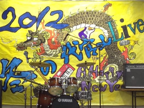 第一商業高校は、写真のように、いつも大きくきれいなバックドロップが用意されています。この日は今年の干支を大きくあしらった素敵なものでした。こういう演出も見習いたいものですね。